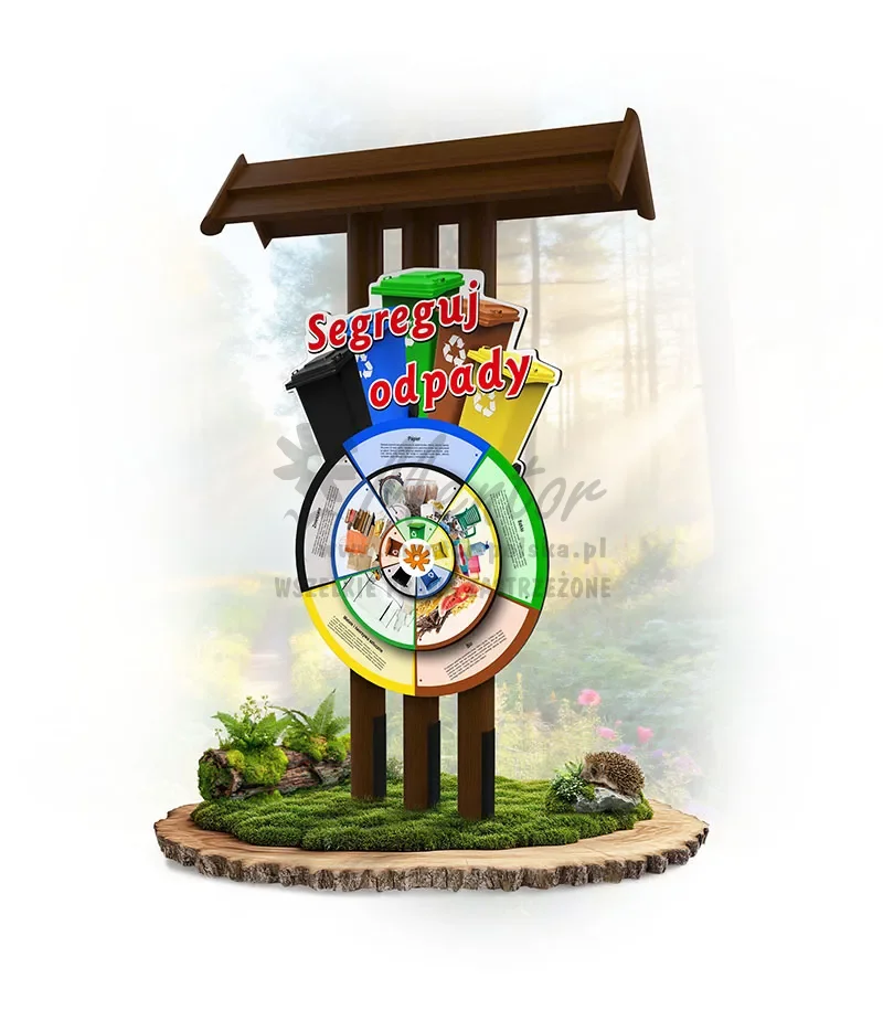 Gra bilansująca w swej formie elementy edukacji i zabawy poprzez zastosowanie obrotowego koła z ozdobnym panelem kształtowym. Merytorycznie prezentuje 5 rodzajów odpadów, które należy przypisać do odpowiedniego koloru pojemnika, przeznaczonego do segregacji. Ma to na celu uświadomienie, iż segregacja pozwala chronić środowisko. Bowiem wszystkie odpady są uciążliwe dla środowiska naturalnego, prowadząc do zanieczyszczania wód powierzchniowych, gruntowych, skażenia powietrza, obniżenia walorów krajobrazowych i estetycznych środowiska, w którym żyjemy.