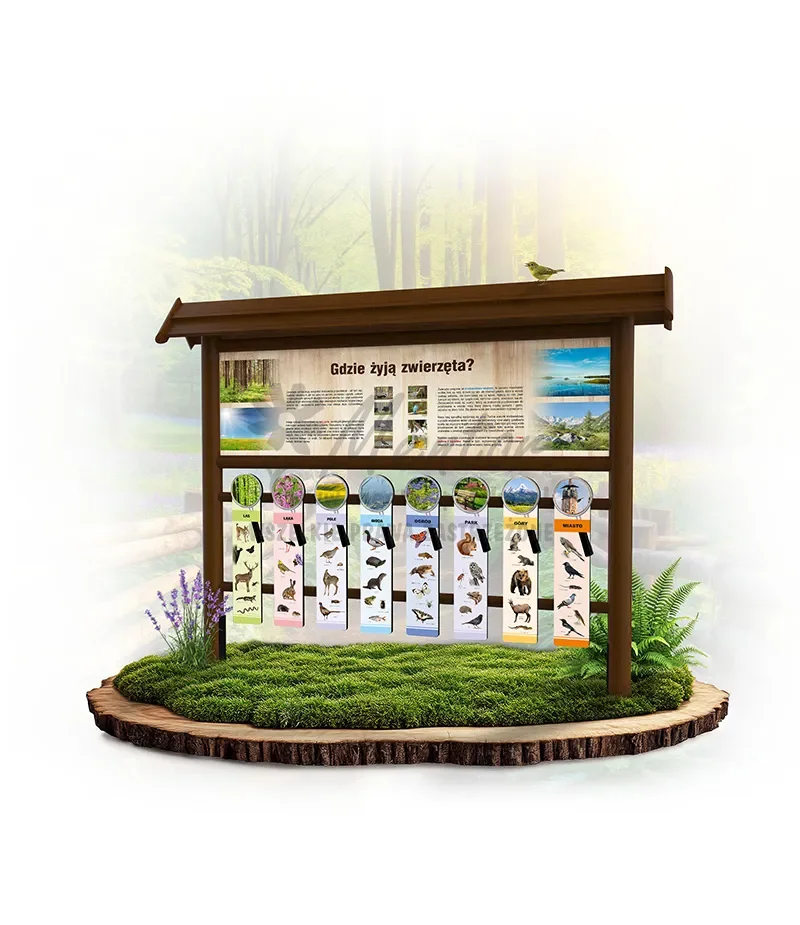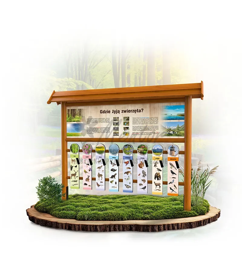 Gra omawia poszczególne środowiska, w których można natknąć się na zwierzęta. Dotyczy to zarówno środowisk naturalnych jak i tych pochodzenia antropogenicznego (stworzonych przez człowieka). Każde z tych miejsc charakteryzuje się występowaniem różnych gatunków zwierząt, co zobaczyć można na 8 panelach znajdujących się w dolnej części konstrukcji.