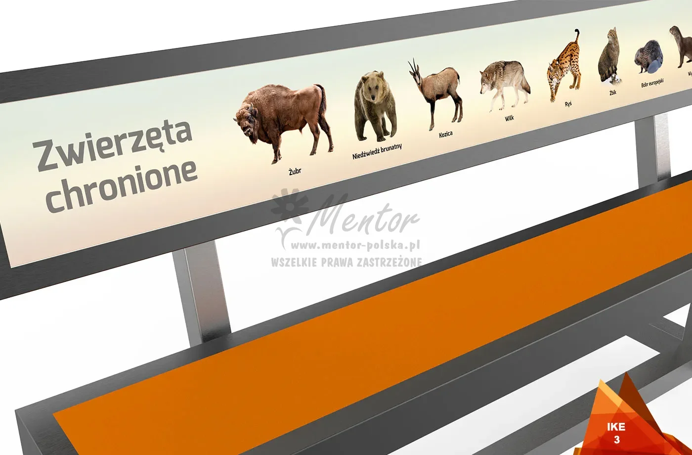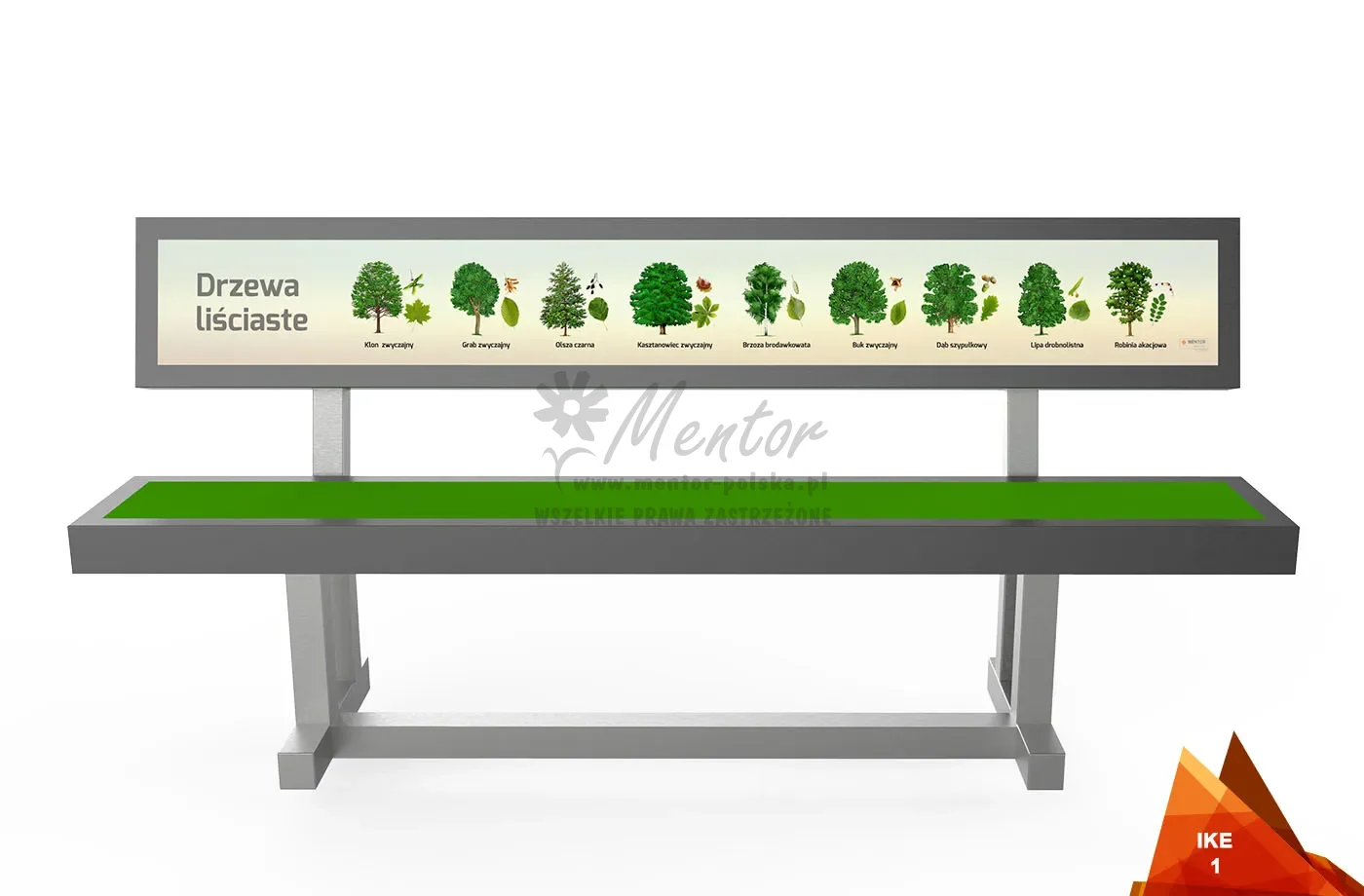 IKE – edukacyjna ławka terenowa jedyna w swoim rodzaju. Po co marnować niewykorzystane płaskie przestrzenie? Na nasz produkt naniesiesz tysiące informacji edukacyjnych lub promocyjnych (możesz skorzystać także z gotowych szablonów). Za sprawą edukacyjnej ławki parkowe ścieżki, ścieżki rowerowe, a także miejskie chodniki zyskają nowe nietypowe miejsca na chwilę odpoczynku.