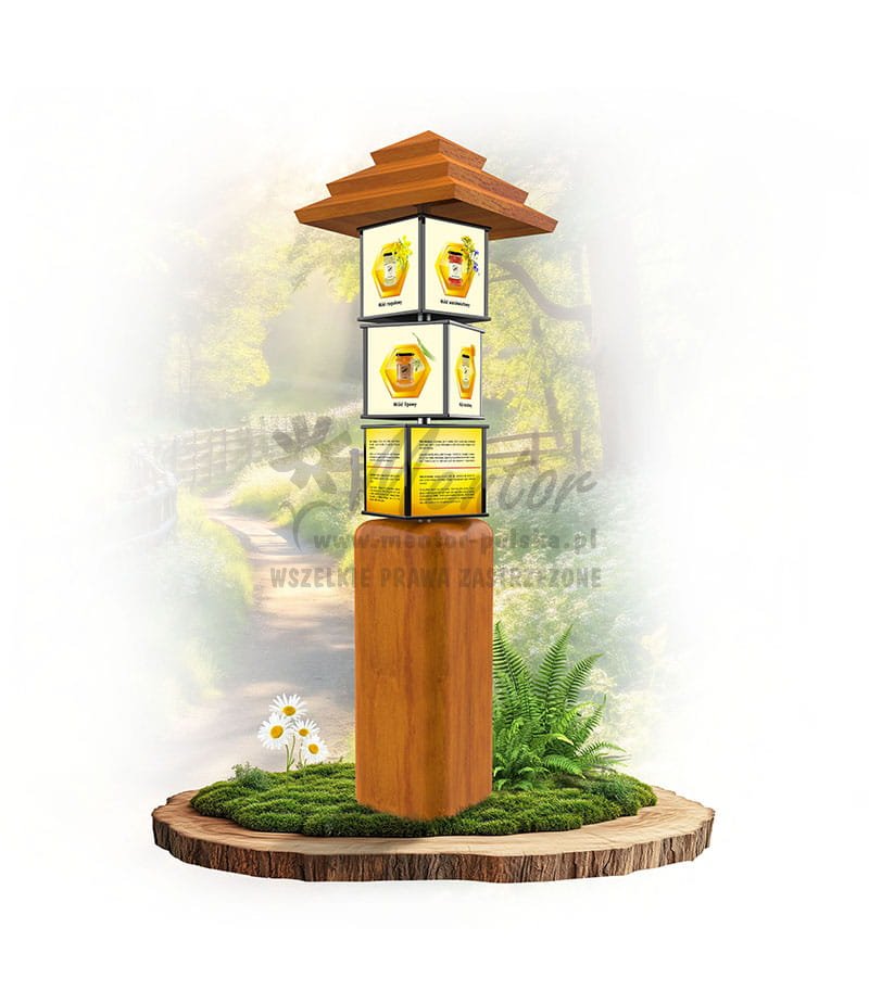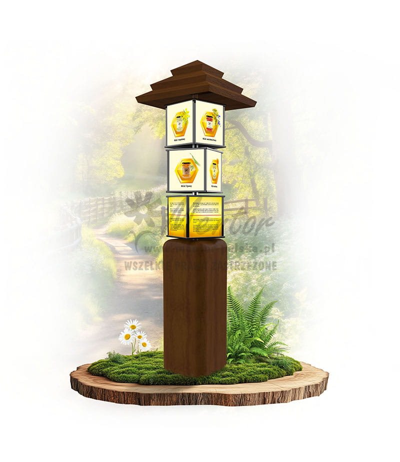 Nadruk bezpośrednio w nośnik (nie naklejka), zabezpieczony lakierem UV antygraffiti przed zmiennymi warunkami atmosferycznymi. Konstrukcja mocowana w gruncie za pomocą kotew wraz z betonem. Wysoka jakość, trwałość oraz odporność na warunki atmosferyczne. Gwarancja producenta.