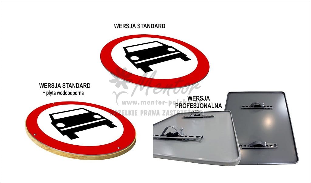 - Wersja profesjonalna - całość jest wykonana na profesjonalnym podkładzie. Na rewersie znajdują się obejmy w celu przytwierdzenia znaku do rury (brak w zestawie) zakotwiczonej w gruncie.